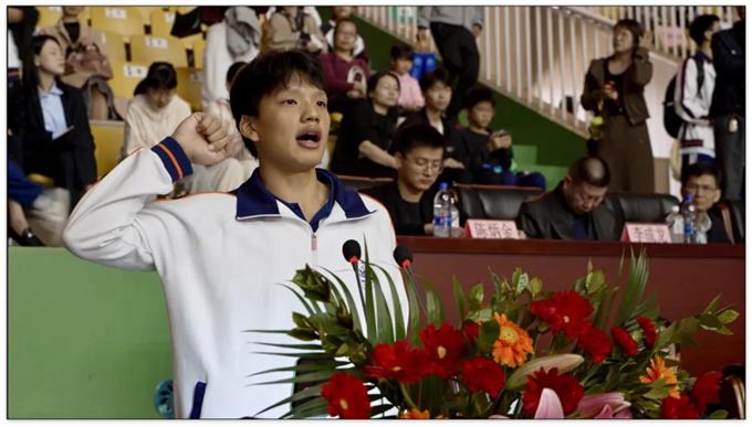 在热烈掌声中,郑建明董事长宣布本届体育文化节正式开幕,五彩烟带腾空绽放,象征体育文化节的丰富多彩与侨中人生的绚烂前程。随后,运动员代表王浩坚与裁判员代表郭秀勇分别宣誓,承诺公平竞争、公正执裁。裁判长林鸿森老师宣布竞赛日程,将全场期待推向高潮。