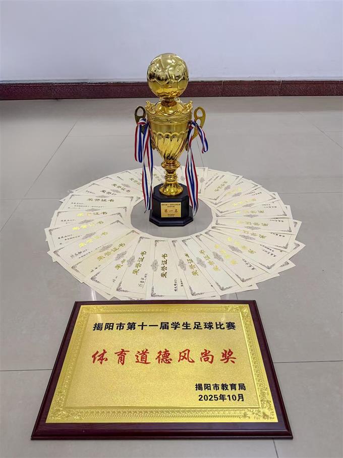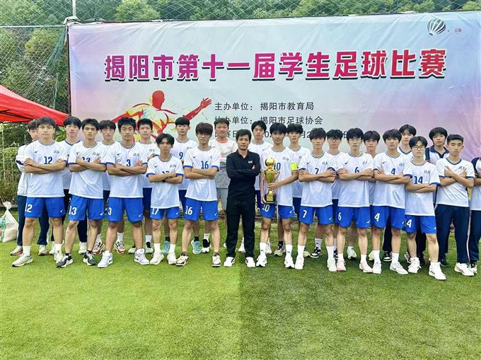2025年10月28日,由揭阳市教育局主办的第十一届学生足球比赛在榕城区欧厝逸扬足球场顺利闭幕。经过六天的激烈角逐,我校男子足球队以全胜战绩勇夺高中组桂冠,展现出卓越的竞技水平和顽强的拼搏精神。